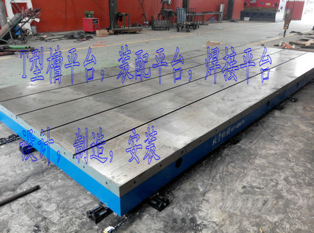 我公司為保定客戶(hù)生產(chǎn)的T型槽焊接平臺(tái),2件2500*4000mm的T型槽平臺(tái),拼接成2500*8000mm的焊接裝配平臺(tái).表面帶有刻度線,間距200*200mm。應(yīng)客戶(hù)要求在平臺(tái)周邊間距250mm均布M20的螺栓孔40個(gè)。