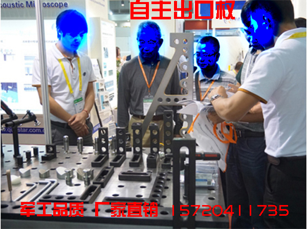 所有模塊加工精度均較高,工作平臺上任意兩個(gè)孔的公差在±0.1mm以內(nèi),完全可以滿足焊接加工的需要。在裝配或焊接過程中,使用定位塊、連接塊、夾緊器和支撐塊,能夠?qū)ぜ_定位,需要焊接的工件可以被穩(wěn)定地固定在各個(gè)定位點(diǎn)或定位面上。如果工件本身的幾何尺寸不準(zhǔn)確,也可以很快被檢測出來,在初加工工序中便被消除。